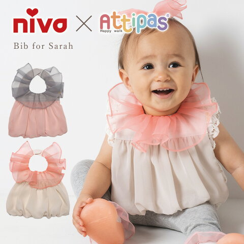 スタイ おしゃれ niva×Attipas アティパス Bib for Sarah グレイ ピンク 人気ブランド コラボレーション ベビー ビブ 女の子 赤ちゃん お食事エプロン かわいい よだれかけ シフォン フリル バルーン フォーマル 出産祝い 誕生日 プレゼント ギフト【返品不可】【T】