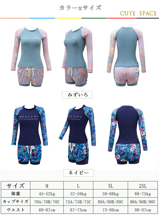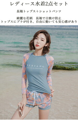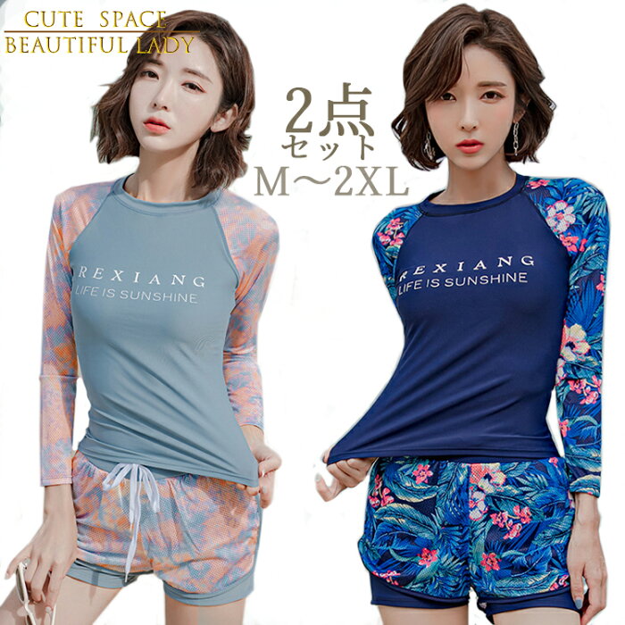 レディース 水着 体型カバー 体型 カバー tシャツ 長袖 ショートパンツ セパレート レディース 花柄 ラッシュガード オシャレ お洒落 センプル 可愛い 2点セット 20代 30代 40代 50代 オトナ女子 露出控えめ M L XL 2XL