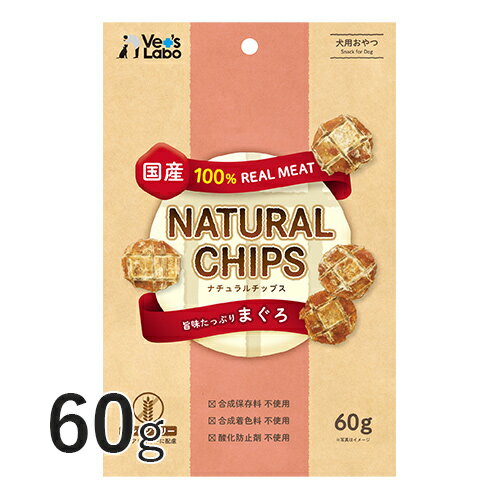 【2個までメール便配送可】 ナチュラルチップス 旨味たっぷり まぐろ 60g 【Vet's Labo】 犬 おやつ まぐろ マグロ グレインフリー 国産 ミネラル 鉄分 亜鉛 高タンパク 低カロリー ペット チップス [T]