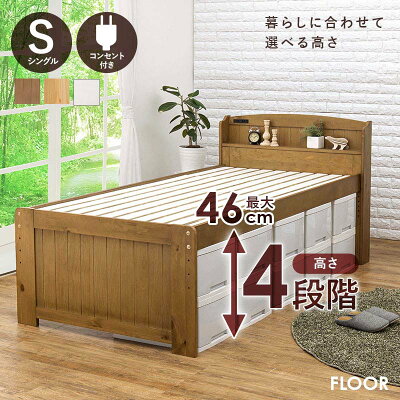 【エントリーでポイント10倍★〜8/23 1:59まで】4段階高さ調節 すのこベッド シングル【FLOOR】フロア(カントリー調 ベッド シングル 収納 木製 おしゃれ 北欧 高さ調整 頑丈 宮付き 宮棚 コンセント付き 調節 大容量 シンプル ベッドフレーム シングルベッド ナチュラル ホ
