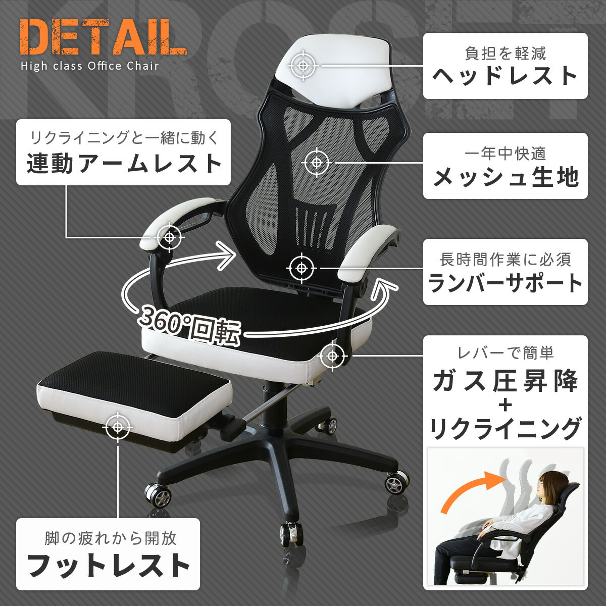 オフィスチェア リクライニングチェア フットレスト付き ハイバック デスクチェア ビジネスチェア ゲーミングチェア 肘付き パソコンチェアー 腰 レザー クロセット ドリス