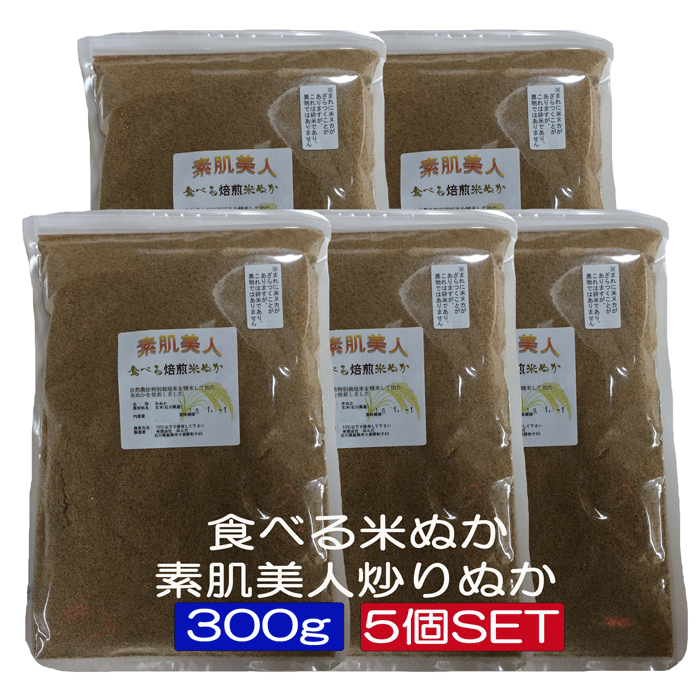【送料無料】食べる 米ぬか 『焙煎』 炒りぬか 「素肌美人」300g5個セット宅配便 「自然農法 自然の恵み 健康米ぬか」[食べる米ぬか、食用 米ぬか、米ヌカ、等販売]