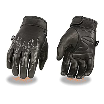 【中古】【輸入品・未使用】Shaf International レザー手袋 メンズ 炎の刺繍入り S ブラック SH820-S-BLACK