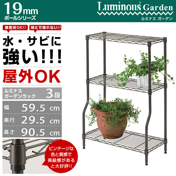 【屋外&屋内兼用 サビに強い】 ラック スチールラック 幅60 奥行30 メタル ラック ガーデニングラック ガーデニング 棚 フラワースタンド フラワーラック プランターラック 頑丈 おしゃれ シェルフ 3段 ルミナス ガーデンラック GR6090BD-3