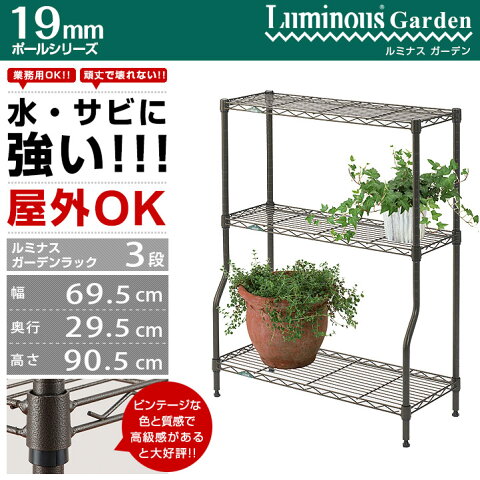 【屋外&屋内OKサビに強い】ラック スチールラック メタル ラック ガーデニングラック ガーデニング 棚 幅70 奥行30 シェルフ 3段 フラワースタンド プランターラック 頑丈 おしゃれ ルミナス ガーデンラック 正規品 GR7090BD-3