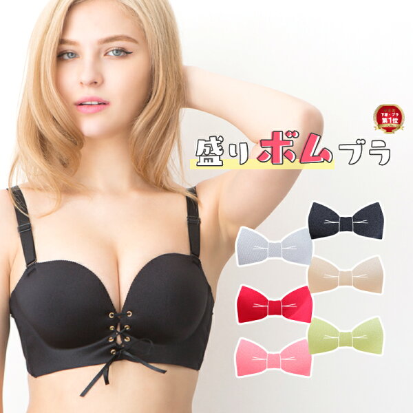 ブラとおそろいのショーツもついてお買い得! リボンで谷間メイク全6色 「盛りボムブラ」 ★